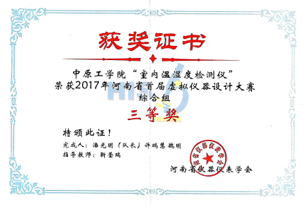 2017年度河南省首届虚拟仪器设计大赛获奖证书